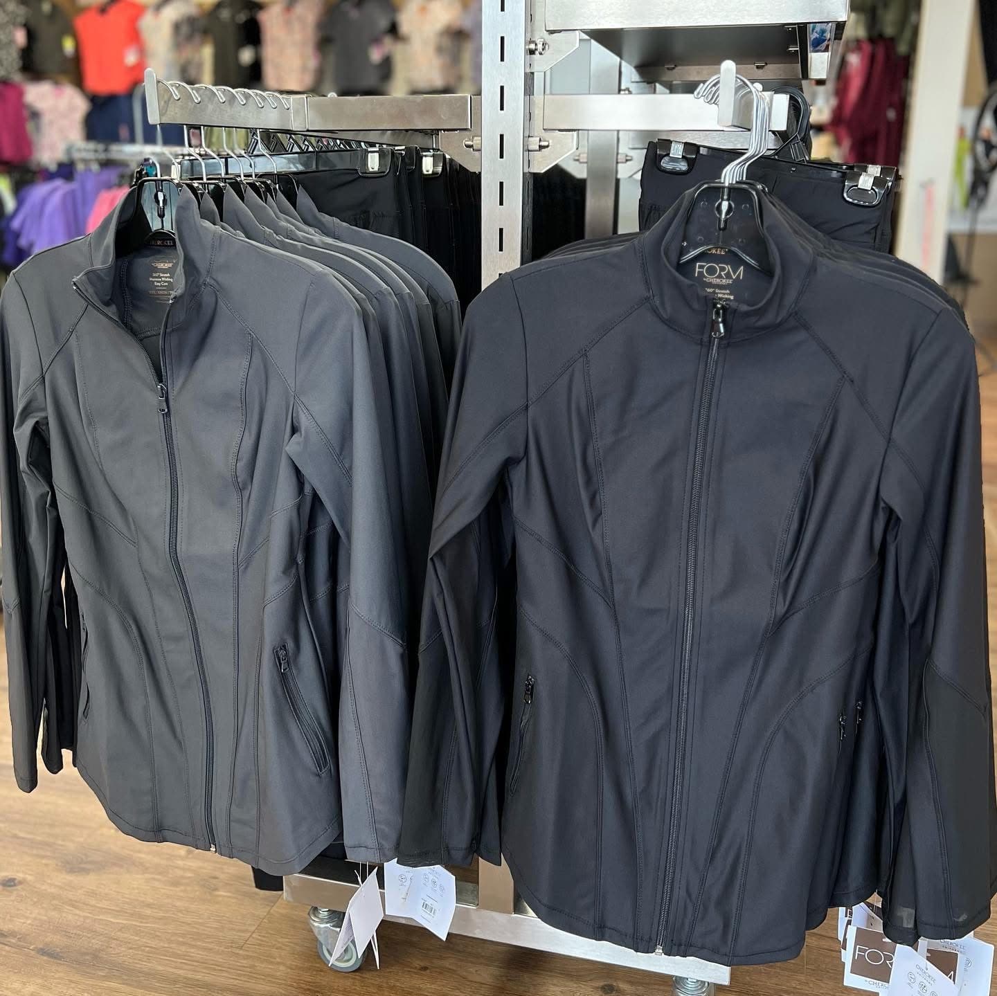 November 24, 2022This zip front, mock-neck jacket is form flattering and stylish. It features front zip pockets, multiple active-inspired seams, and power mesh insets at sleeves and racer back panel. Contemporary Fit. Center Back: 26″