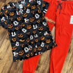 August 15, 2025This modern classic fit V-neck top combines functionality and style with two front pockets, short sleeves, and side vents for added comfort and mobility. Designed with a flattering silhouette, it’s the perfect blend of practicality and personality. Seasonal prints add a fun, expressive touch to refresh your workday look. CBL: 26″.