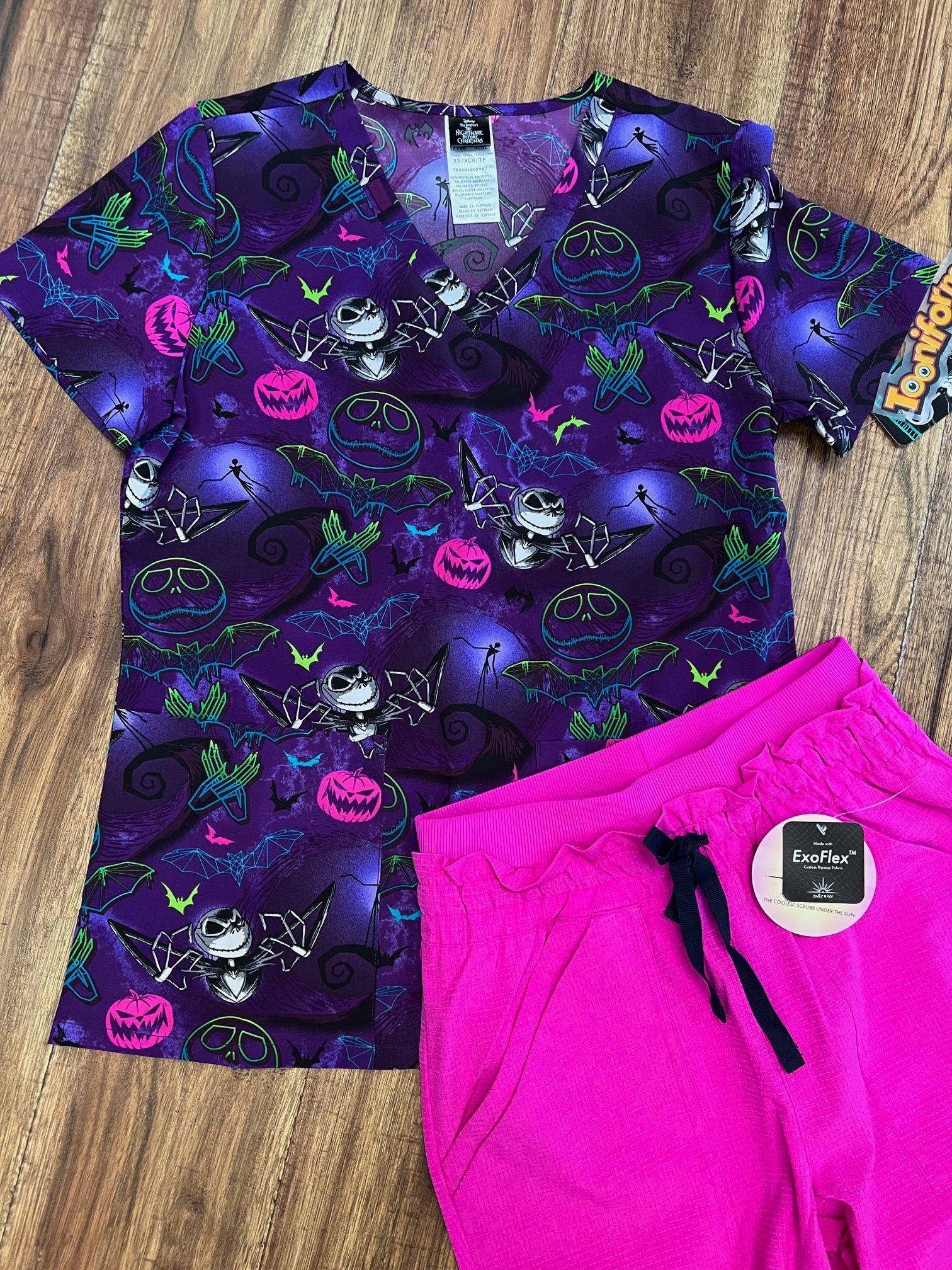 August 15, 2025This modern classic fit V-neck top combines functionality and style with two front pockets, short sleeves, and side vents for added comfort and mobility. Designed with a flattering silhouette, it’s the perfect blend of practicality and personality. Seasonal prints add a fun, expressive touch to refresh your workday look. CBL: 26″.
