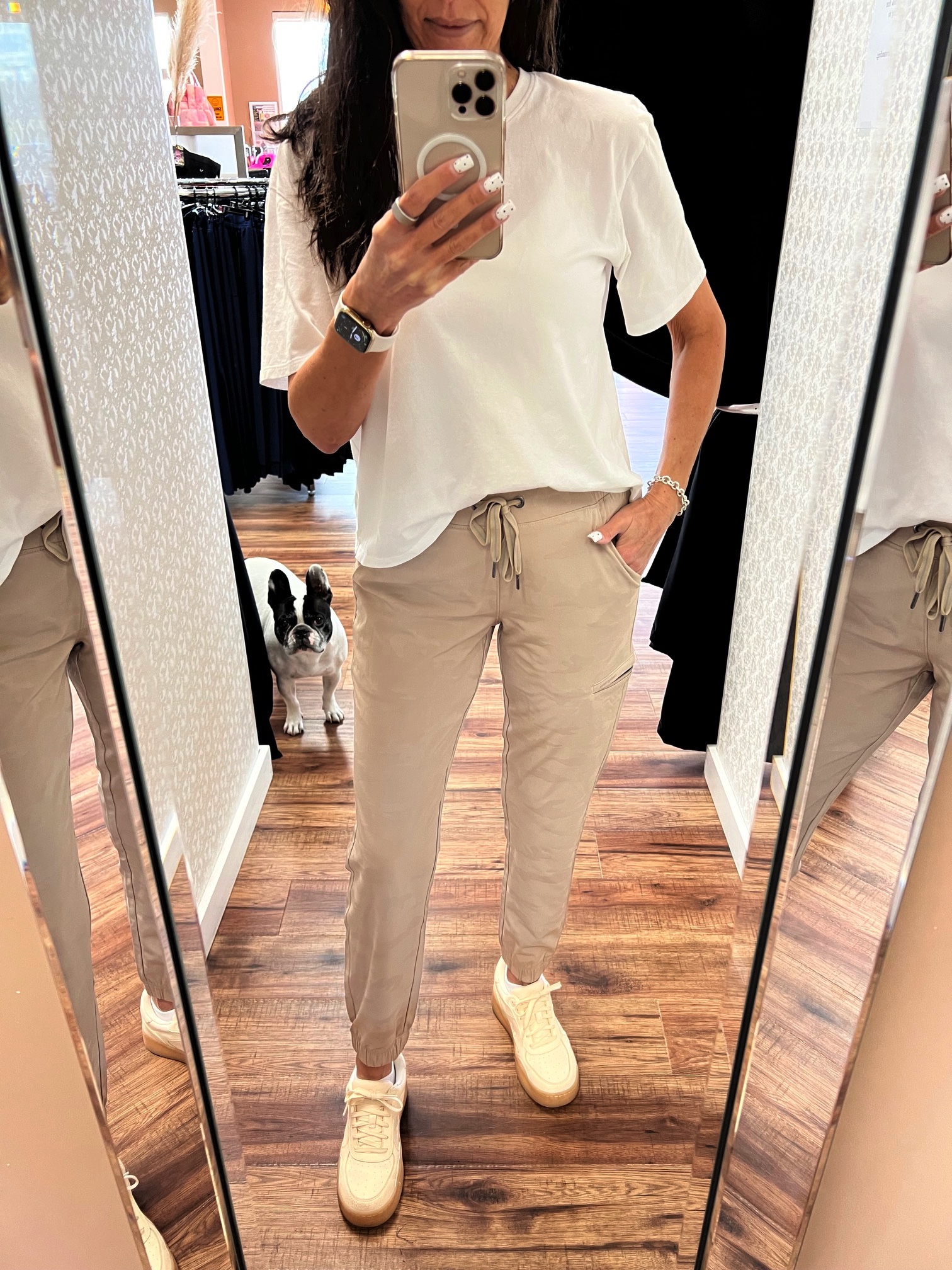 Flat front drawstring pant, features 2 front pockets, 2 back pockets and 1 zipper cargo pocket. It has back elastic waistband and elastic leg cuff for better fit. This collection is no longer available in store but we are more than happy to order it for you. This Jogger fits true to size.