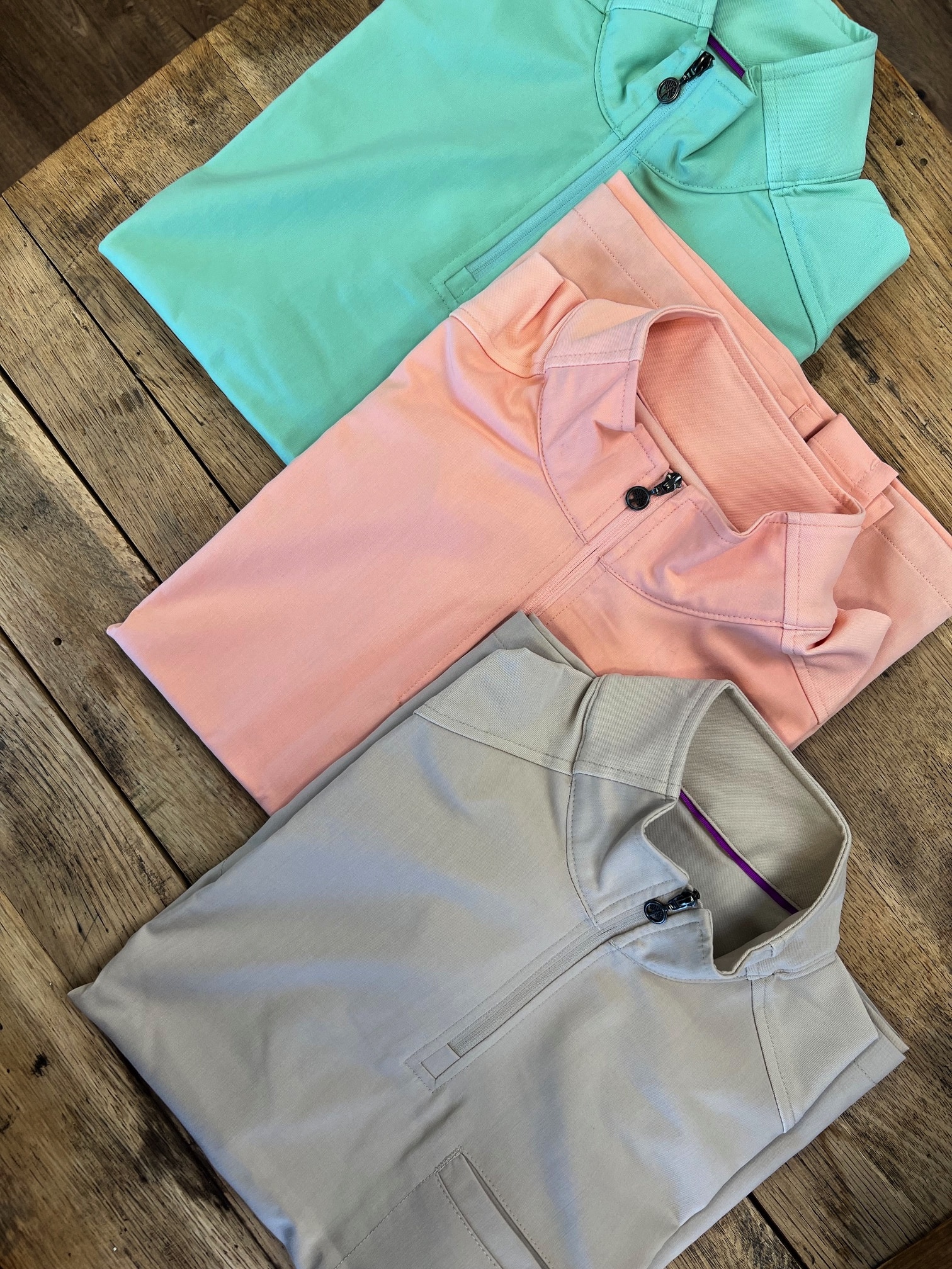 Adjustable quarter-zip neckline. 3 Pockets. Racer-style sleeve panels. Side Vents & PROTX2 fabric technology to fight odor.