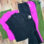 - 97% polyester, 3% spandex ripstop stretch, 2×2 rib: 92% polyester, 8% spandex