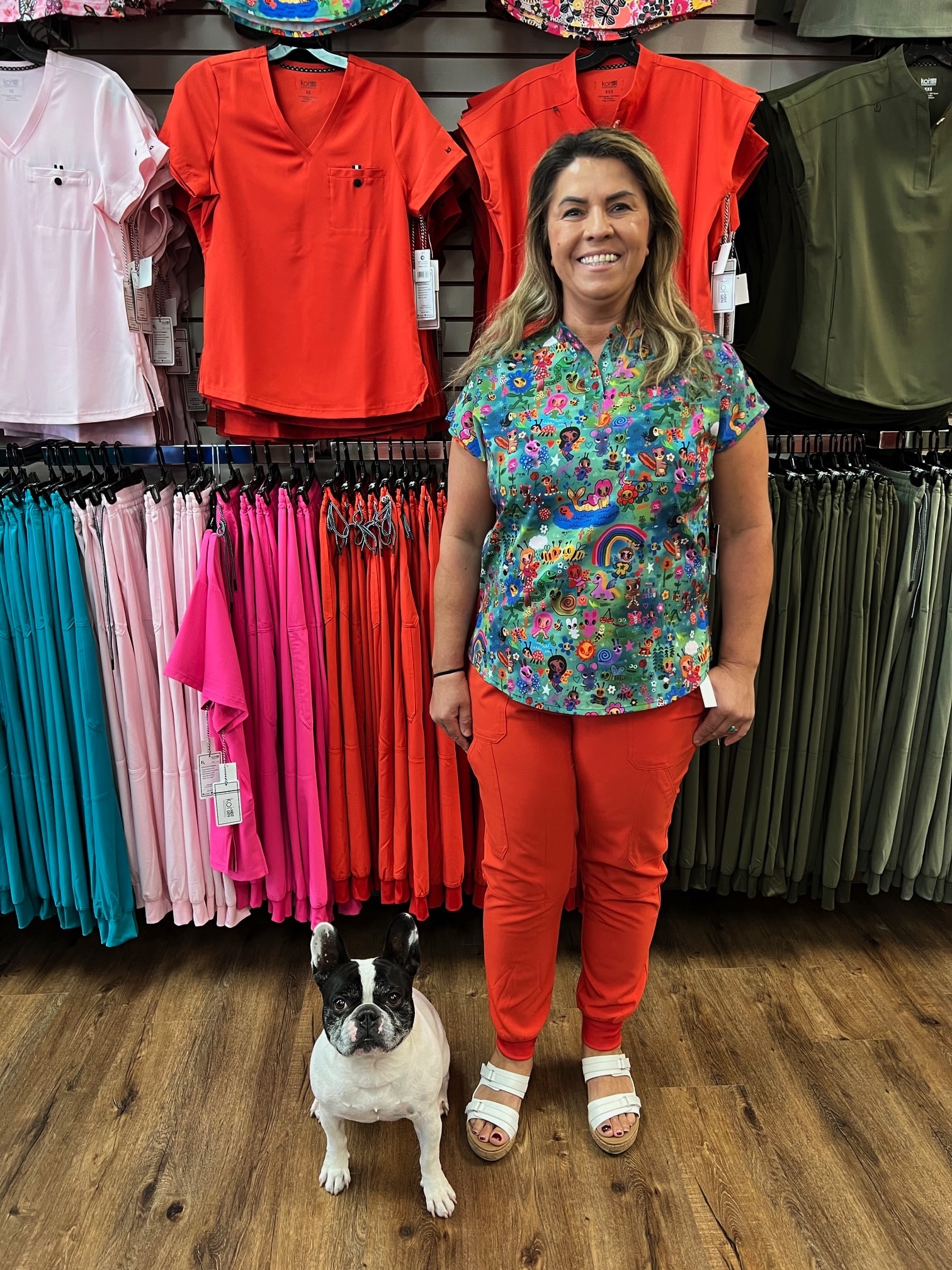 Look amazing in this fun, limited edition print scrub top from koi’s collaborative Artists Series. Contemporary fit.