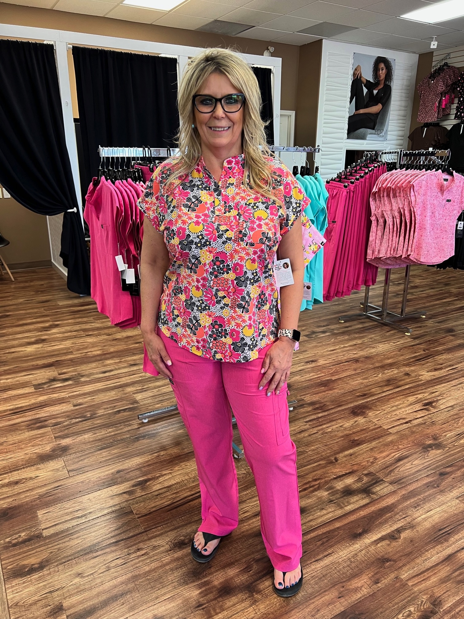 Unique, fashion-forward women’s print scrub top. Contemporary fit.