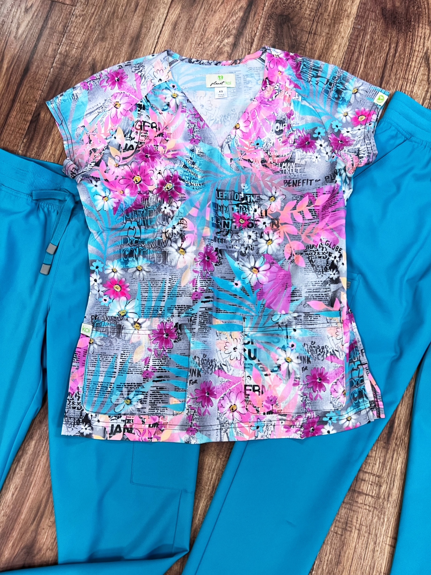 - Planet koi Meadow Women’s 2-Pocket Eco-friendly Print Scrub Top