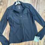 July 25, 2025Re-designed and like the original but a little more mesh design in the back of the jacket. This zip front, mock-neck jacket is form flattering and stylish. It features front zip pockets, multiple active-inspired seams, and power mesh insets at sleeves and racer back panel. Contemporary Fit. Center Back: 26″